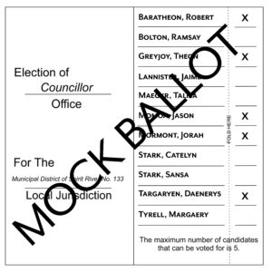 This means you may choose up to 5 candidates for Council regardless of where you or the candidates live in the MD – 𝘢𝘯𝘺𝘰𝘯𝘦 𝘪𝘯 𝘵𝘩𝘦 𝘔𝘋 𝘤𝘢𝘯 𝘷𝘰𝘵𝘦 𝘧𝘰𝘳 𝘢𝘯𝘺𝘰𝘯𝘦 𝘰𝘯 𝘵𝘩𝘦 𝘣𝘢𝘭𝘭𝘰𝘵. You may 𝗢𝗡𝗟𝗬 vote 𝗼𝗻𝗰𝗲 for each candidate to a 𝗺𝗮𝘅𝗶𝗺𝘂𝗺 of 5 candidates. Any ballots with more than 5 candidates checked off will become VOID.