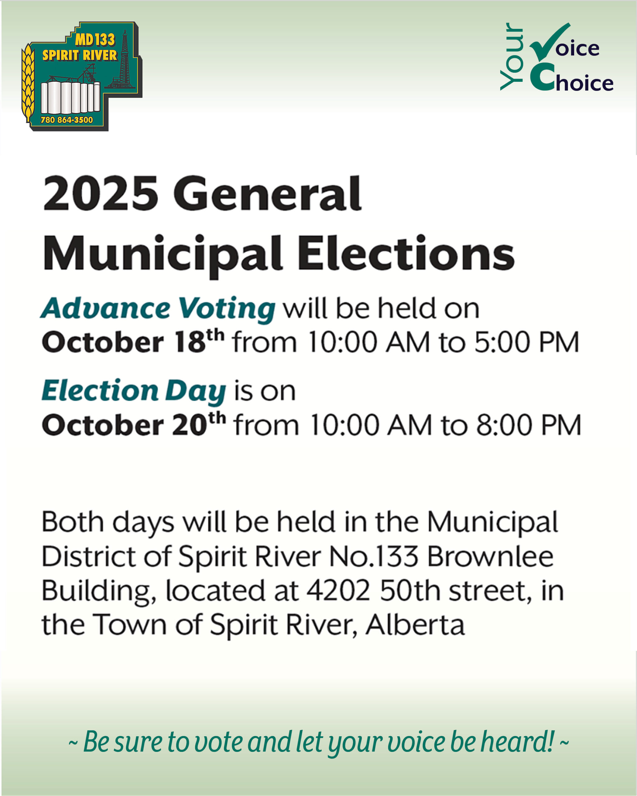 The MD of Spirit River #133 now has 𝗔𝘁-𝗟𝗮𝗿𝗴𝗲 𝗥𝗲𝗽𝗿𝗲𝘀𝗲𝗻𝘁𝗮𝘁𝗶𝗼𝗻 (formerly wards system).