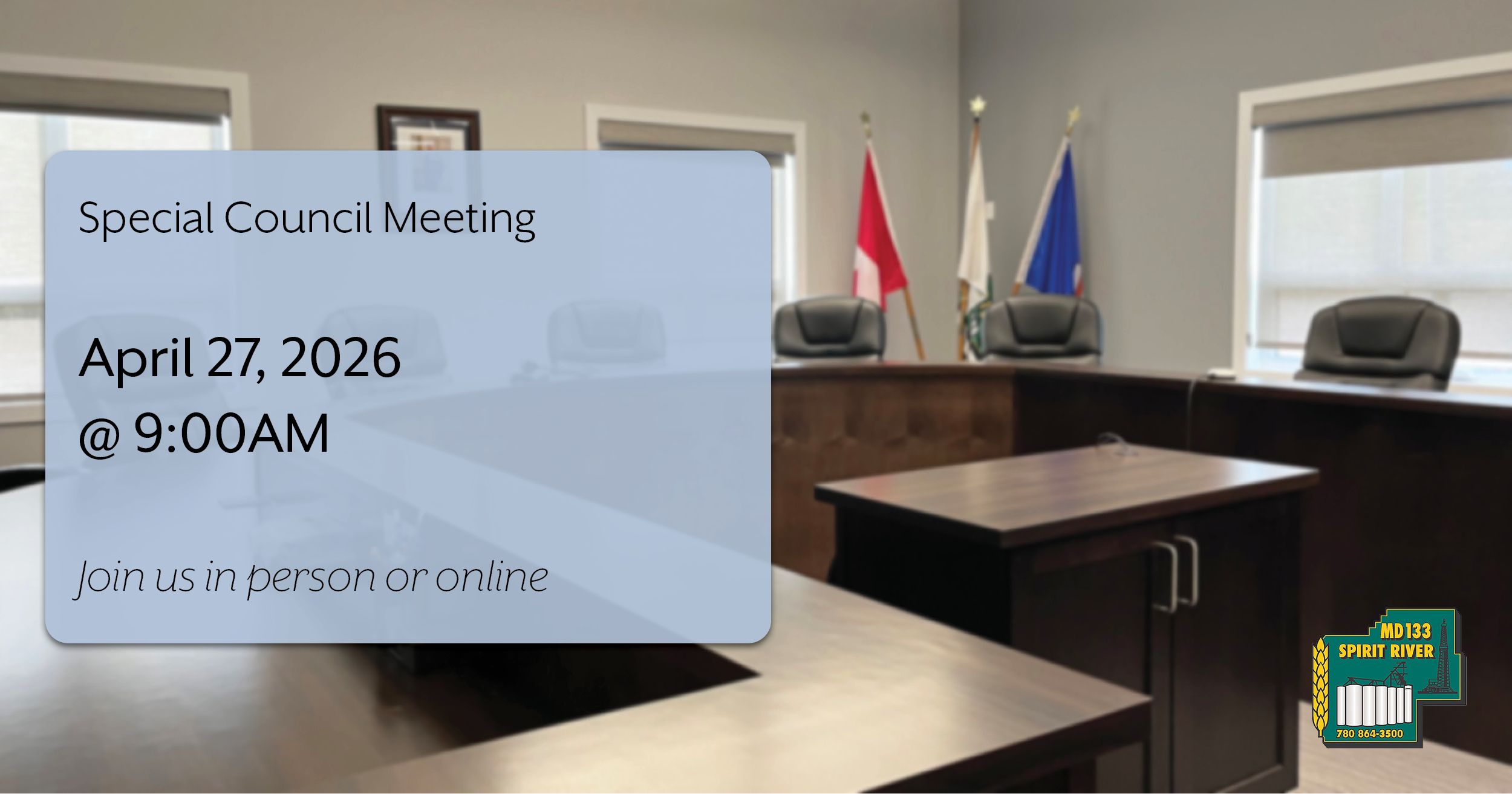 Reeve Tony van Rootselaar has called for a special council meeting to be held on April 27, 2026, at 9:00AM.